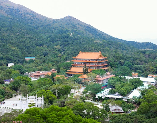 Votre voyage commence au terminal du téléphérique de Tung Chung, à quelques pas de la station de MTR de Tung Chung. De là, le téléphérique parcourt 5,7 km à travers la baie de Tung Chung, l'aéroport et les montagnes de Lantau, pour atteindre Ngong Ping en 25 minutes environ.